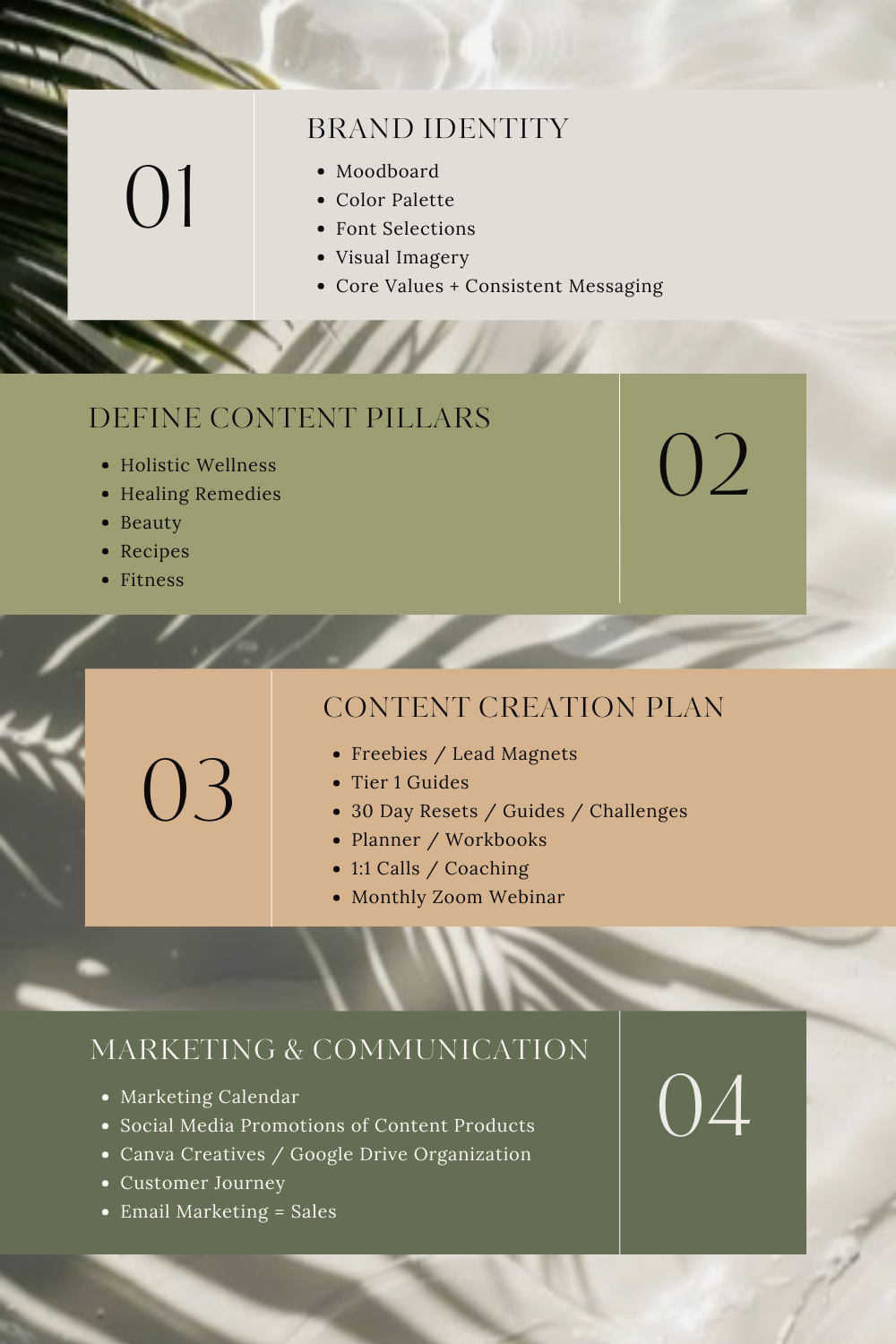 If your visuals say “calm intuitive healer” but your messaging is sharp and science-heavy, your brand will feel off, even if it looks beautiful.